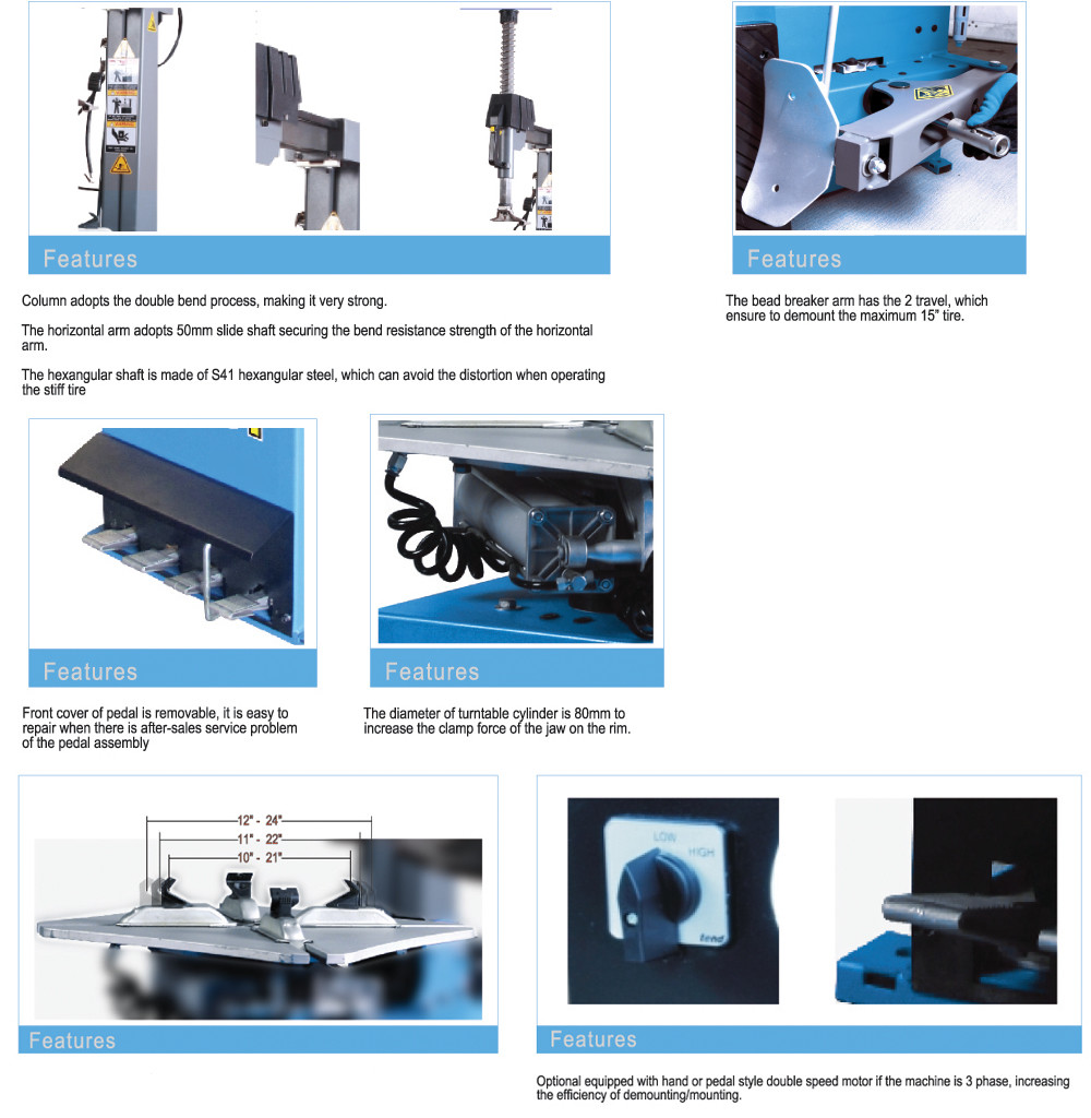4) ビードのブレーカの刃の設計は力を壊す最もよいビードをしっかり止めているあらゆる方向でアークの形、それ回ることができるである。ビードのブレーカの刃は保護カバーが装備されている。